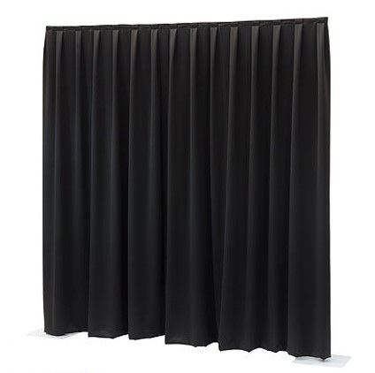 Wentex black pleated drape, 3m wide x 3m drop, with Velcro top for use with Wentex Pipe and Drape system.